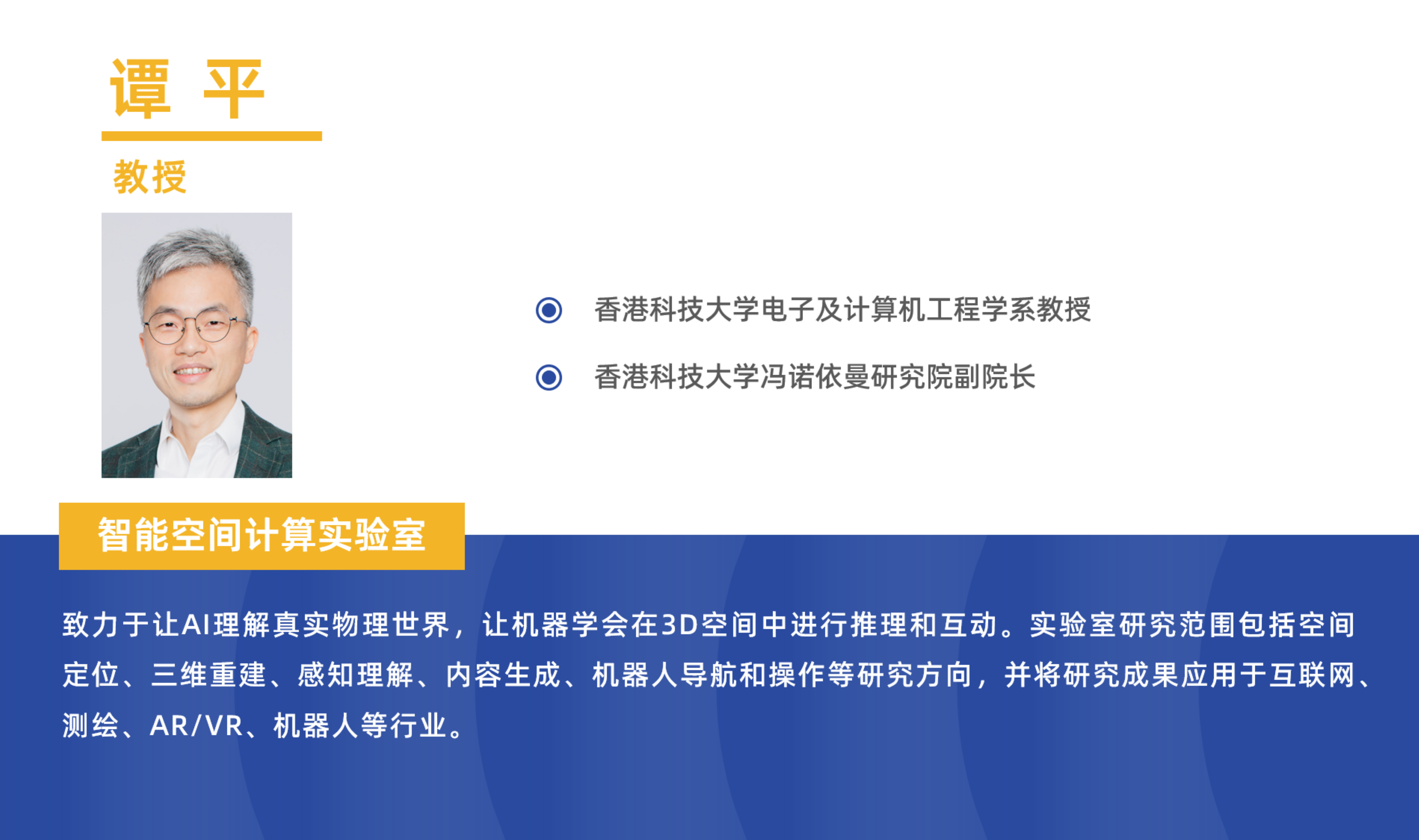 智能空间计算实验室由谭平教授牵头负责,致力于让AI理解真实物理世界,让机器学会在3D空间中进行推理和互动。实验室的研究范围包括空间定位、三维重建、感知理解、内容生成、机器人导航和操作等研究方向,并将研究成果应用于互联网、测绘、AR/VR、机器人等行业。实验室的成员来自谭平教授港科大课题组以及阿里、字节、美团等一线互联网大厂,有深厚的科研积累和丰富的产品化经验。实验室目前承担多个来自国家重点实验、企业的相关研究课题。