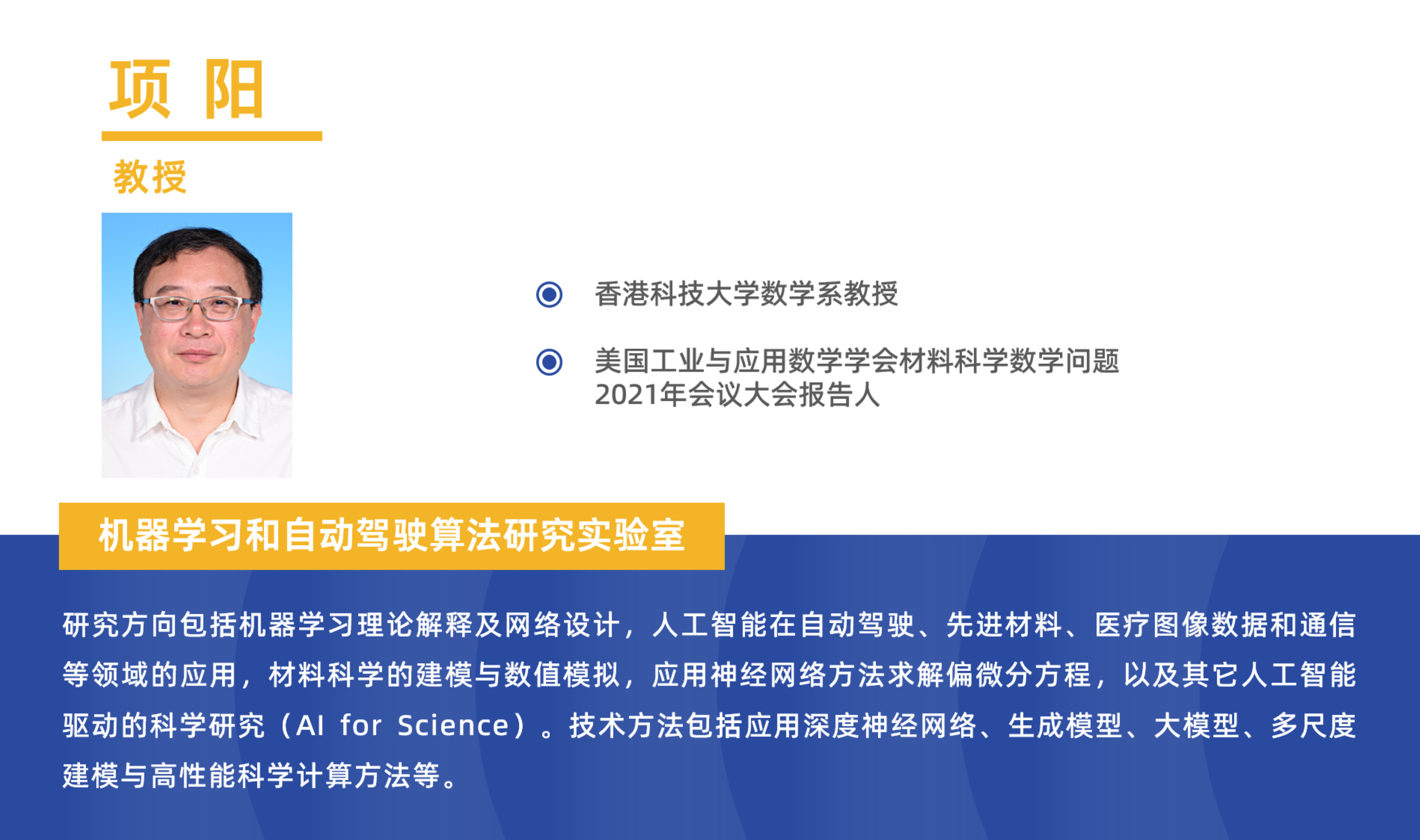 机器学习和自动驾驶算法研究实验室由项阳教授牵头负责,研究方向包括机器学习理论解释及网络设计,人工智能在自动驾驶、先进材料、医疗图像数据和通信等领域的应用,材料科学的建模与数值模拟,应用神经网络方法求解偏微分方程,以及其它人工智能驱动的科学研究(AI for Science)。技术方法包括应用深度神经网络、生成模型、大模型、多尺度建模与高性能科学计算方法等。