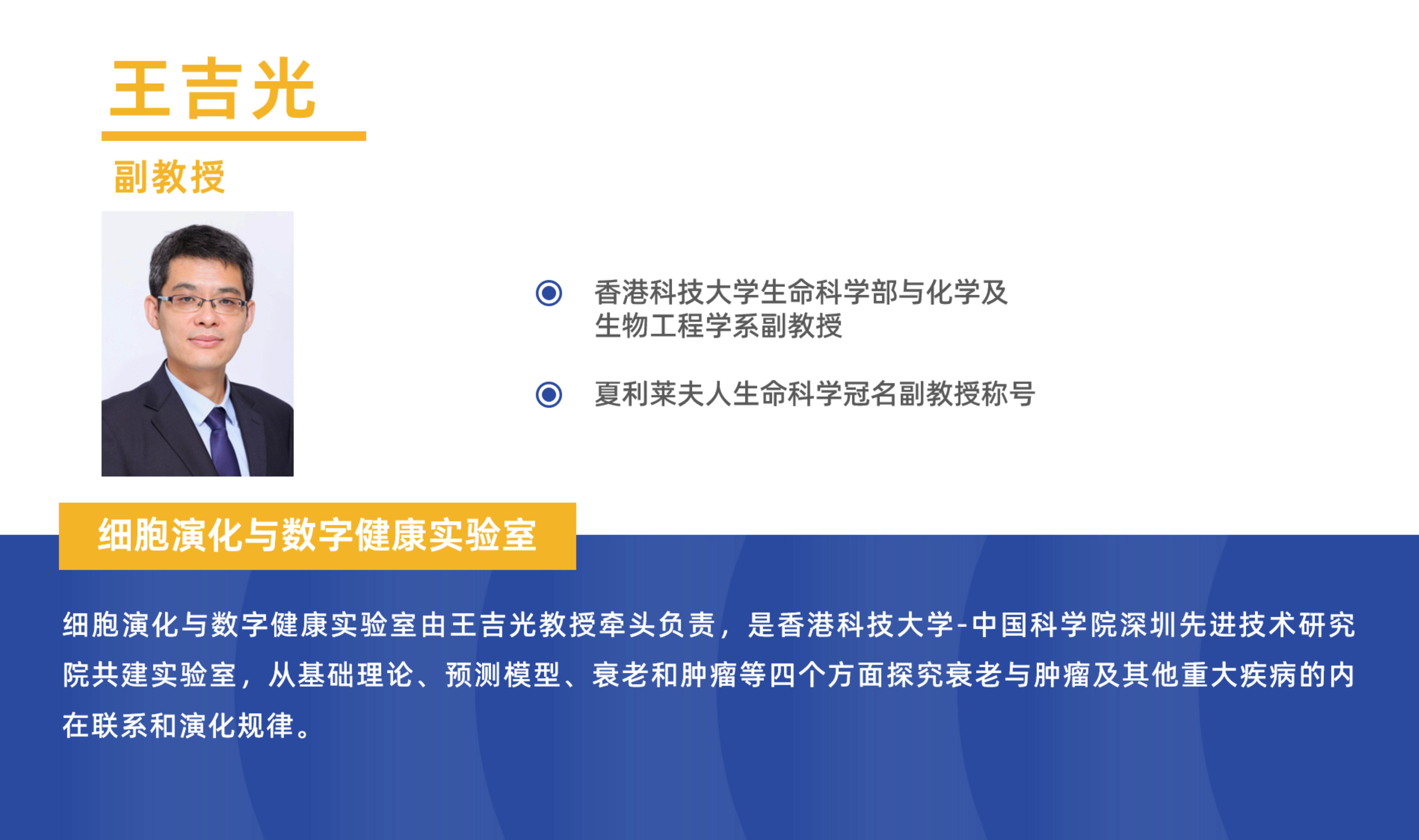 香港科技大学演化与健康中心下设实验室之一。细胞演化与数字健康实验室由王吉光教授牵头负责,是香港科技大学-中国科学院深圳先进技术研究院共建实验室,从基础理论、预测模型、衰老和肿瘤等四个方面探究衰老与肿瘤及其他重大疾病的内在联系和演化规律。